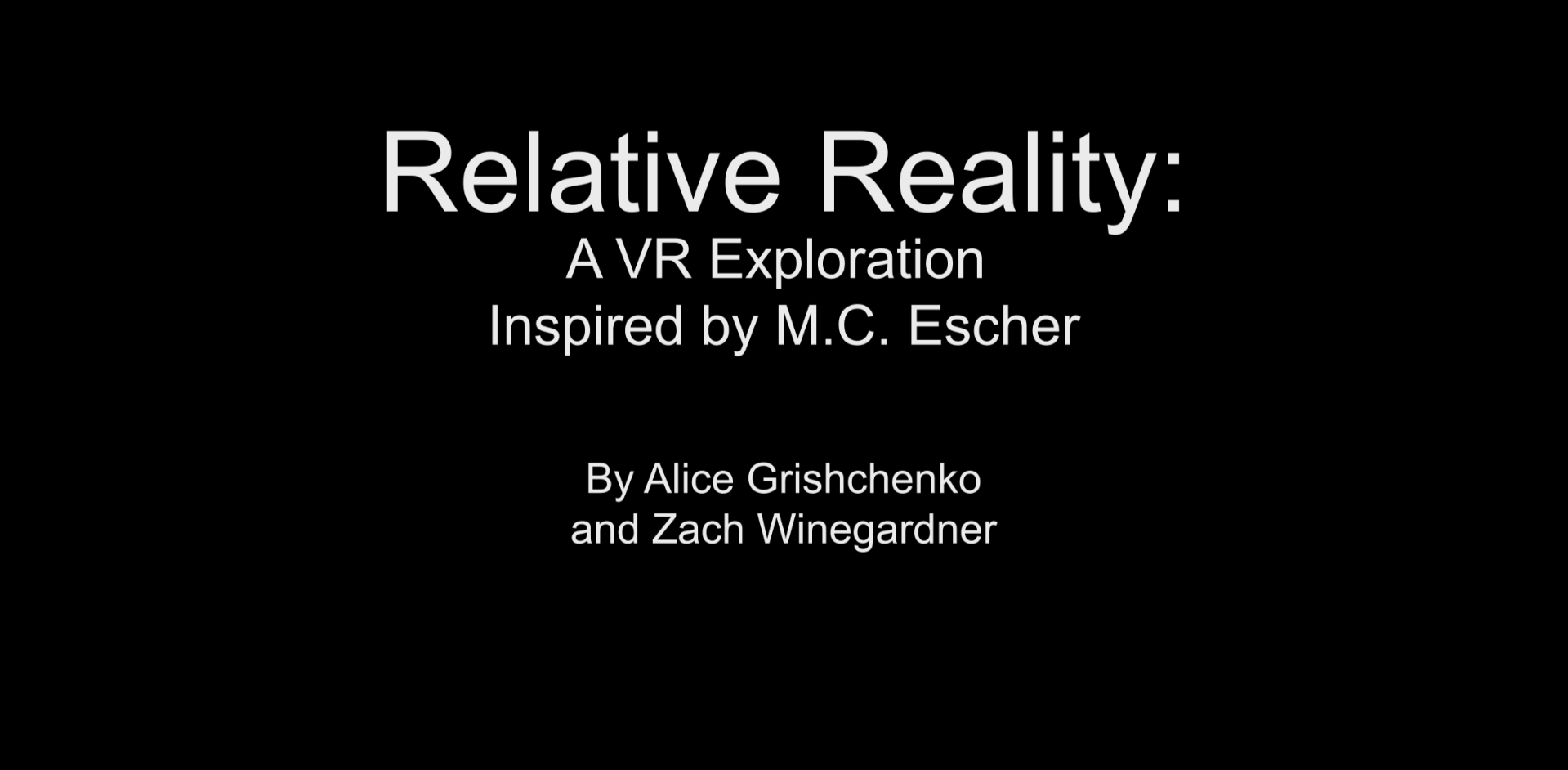 This is a collaborative project I created with Alice Grishchenko, who is interested in interactive media and user-driven narrative. As a mutual interest in surrealist artwork, we agreed to create an interactive environment based on MC Escher’s Relativity lithograph and experiment with ways interactive media and mechanics could reflect concepts suggested in artwork. This image portrays themes of multiple perspectives and a consideration of an individual’s surroundings in their specific orientation in the world.